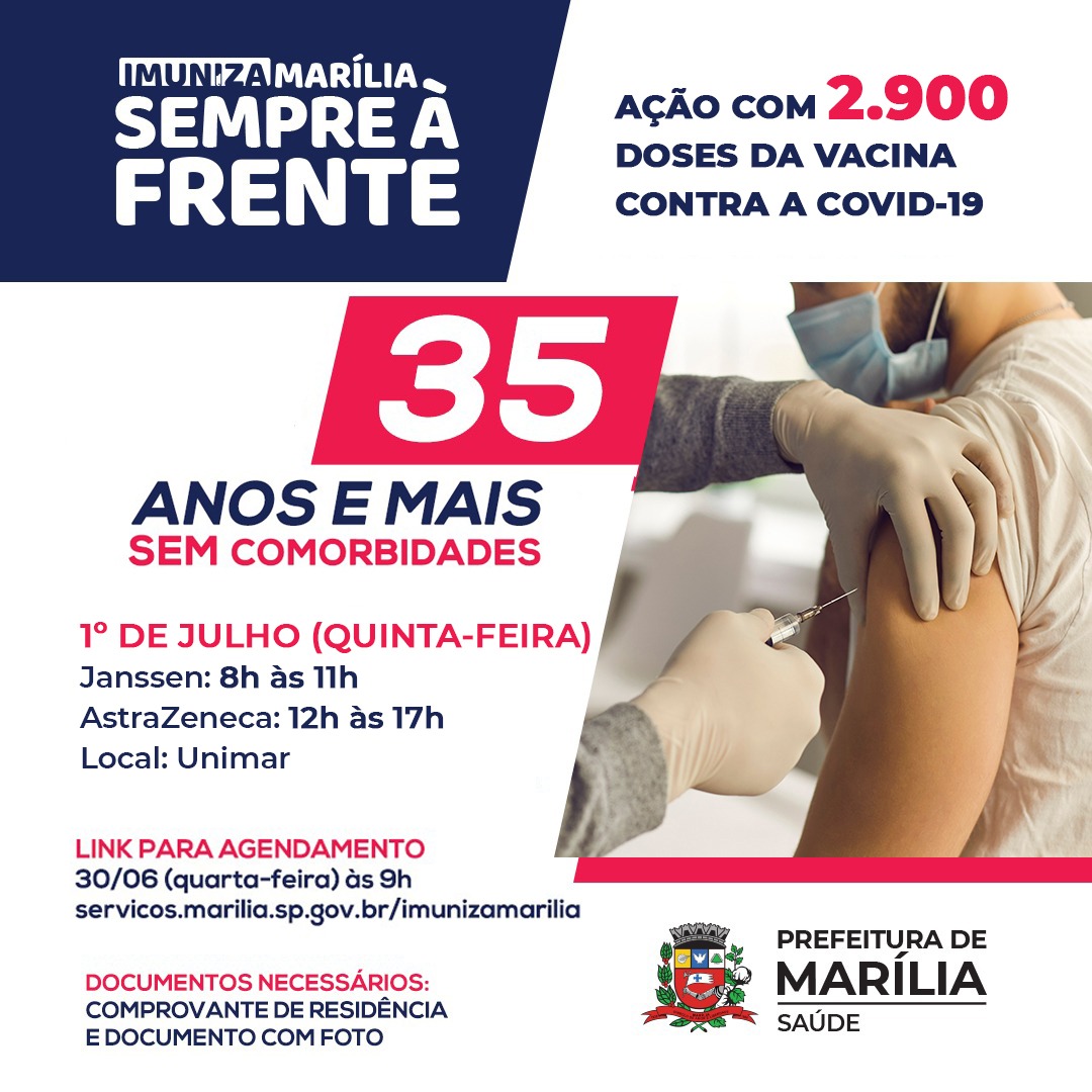 Já Marília (90 km de Ourinhos) está iniciando a vacinaçaõ em pessoas com 35 anos