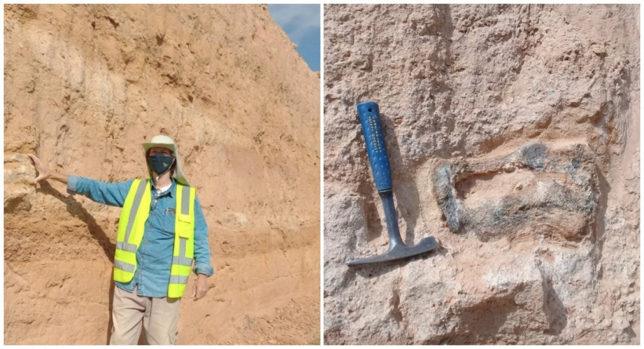 “As rochas aqui pertencem à formação Marília, e ainda estão muito 'sujas' devido à abertura recente do local, por isso o fóssil não está bem visível. Mesmo assim vê-se parte do tecido esponjoso petrificado”, explica.