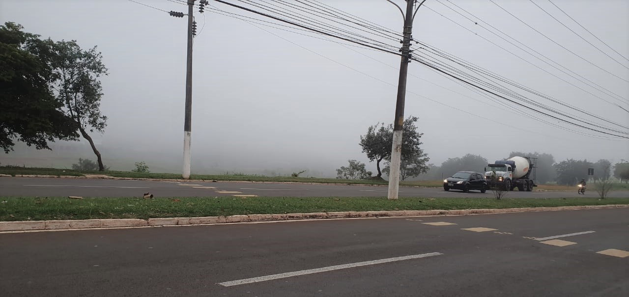 Hoje a cidade amanheceu encoberta por uma neblina - Avenida Luiz Saldanha Rodrigues (Foto: Laperuta)