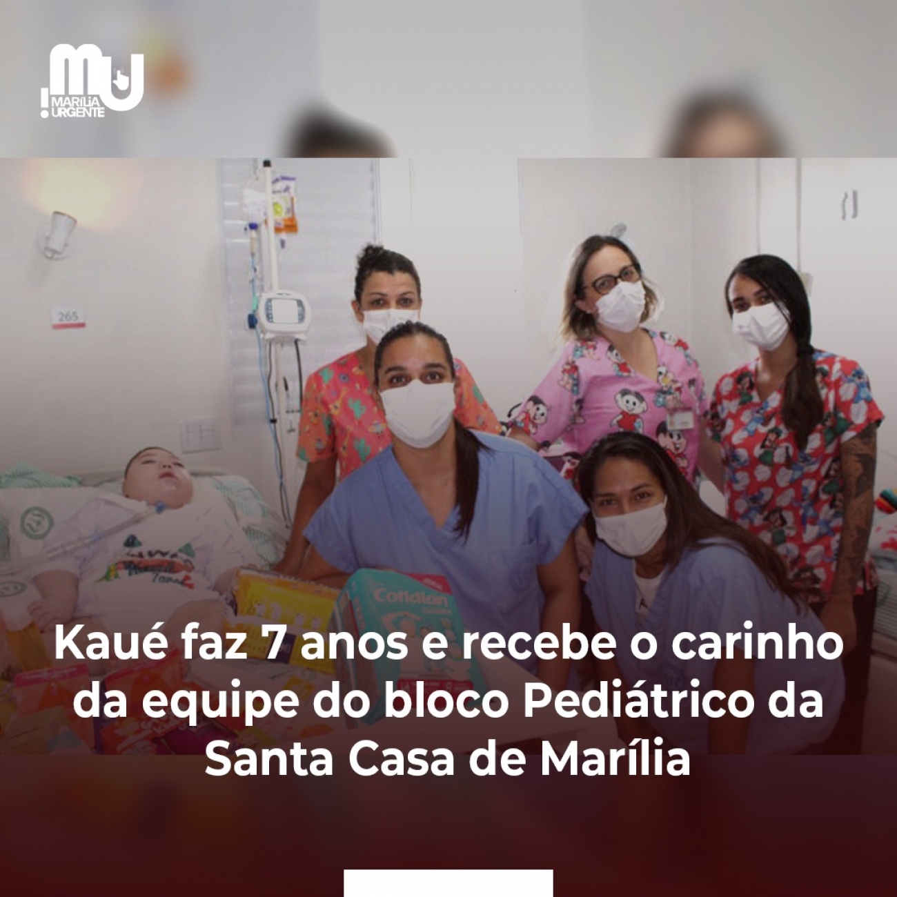 Internado há 6 anos e 8 meses, o pequeno Kauê da Silva completou 7 anos de idade no último dia 25 de fevereiro e recebeu o carinho da equipe de profissionais do Bloco Pediátrico da Santa Casa de Misericórdia de Marília. Campanha foi realizada para arrecadar produtos de higiene e roupas ao garoto.