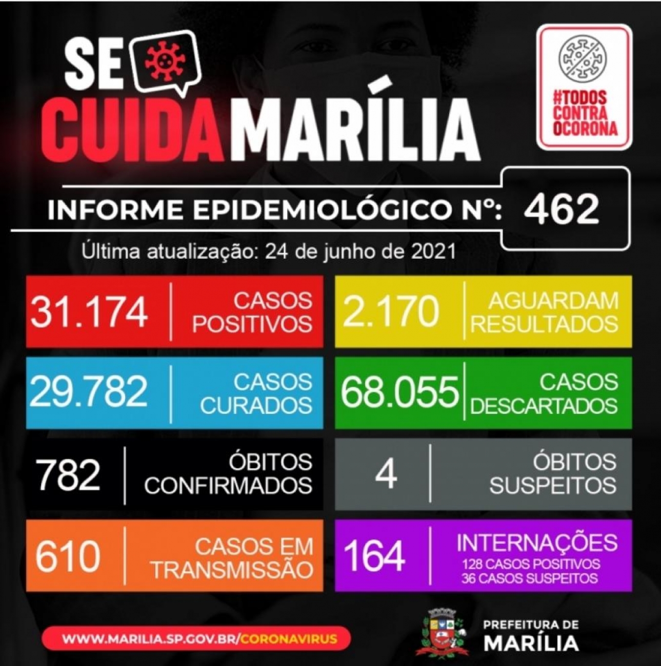 A Prefeitura de Marília registrou mais seis mortes por Covid-19 e a cidade chega a 782 óbitos desde o início da epidemia. Há quatro óbitos em investigação.