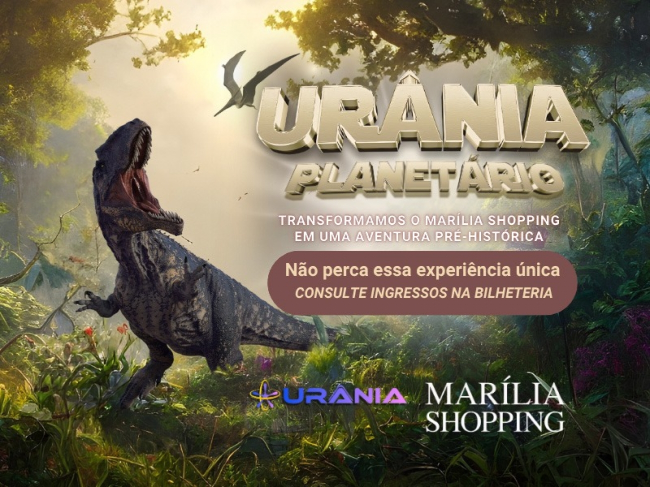 O Marília Shopping se transformou no cenário de uma verdadeira aventura pré-histórica e científica com a chegada da exposição do Planetário Urânia, o maior projeto de educação itinerante do Brasil. A atração reúne dinossauros, experiências imersivas e sessões em uma cúpula de cinema 360º, proporcionando diversão e aprendizado para toda a família.