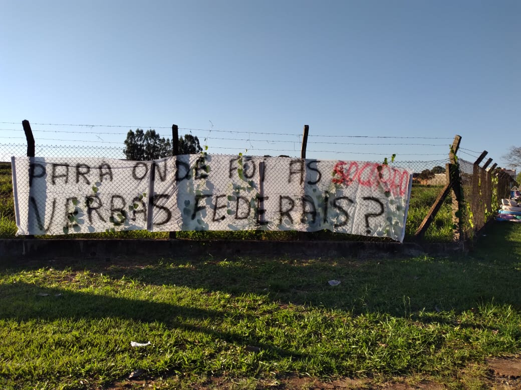 “Estamos morrendo! Ourinhos pede socorro”, “Para onde foram as verbas federais? Socorro!”, “+ de 400 mortes, não temos leitos, não temos medicação, socorro!”, “Sem saúde não existe educação”.