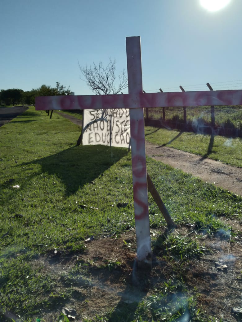 Um grupo de empresários, munícipes de Ourinho, colocaram faixas pedindo socorro e cravaram uma cruz (Ourinhos 405 mortes) no aeroporto municipal, “Jornalista Benedito Pimentel”, durante a visita do ministro da Educação, Milton Ribeiro, que veio à cidade, nesta segunda-feira, 14, participar de um evento com várias lideranças regionais.