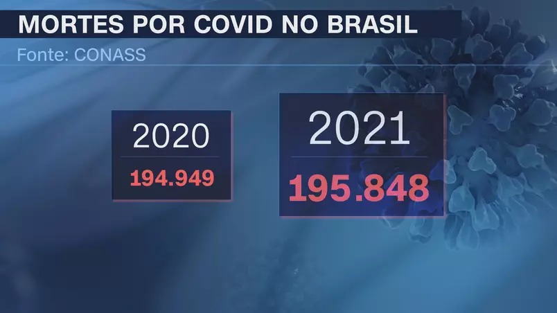 Com a atualização, 2021 já ultrapassou o total de 2020 em número de óbitos por conta do coronavírus. Só neste ano, o país reportou 195.848 mortes em decorrência da doença, ante as 194.949 vítimas de todo o ano passado.