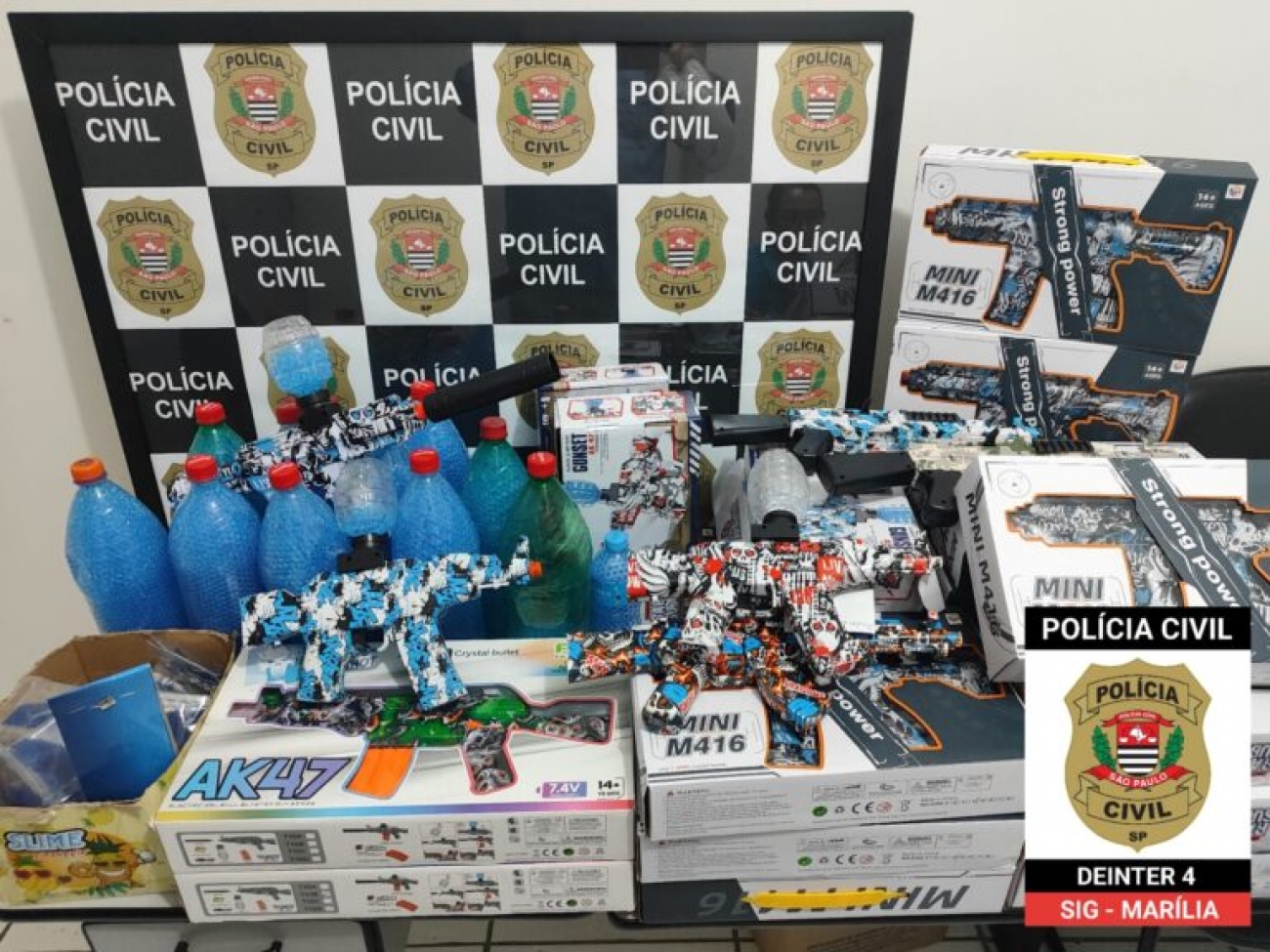 O Setor de Investigações Gerais (SIG) da Polícia Civil realizou, na manhã desta quinta-feira (9), a “Operação Gel Blasters”, com foco em combater a venda de armas que disparam bolinhas de gel em estabelecimentos comerciais do Centro de Marília. A ação resultou na apreensão de mais de 200 unidades dessas “armas de brinquedo” e mais de 2 mil pacotes de munição de gel.
