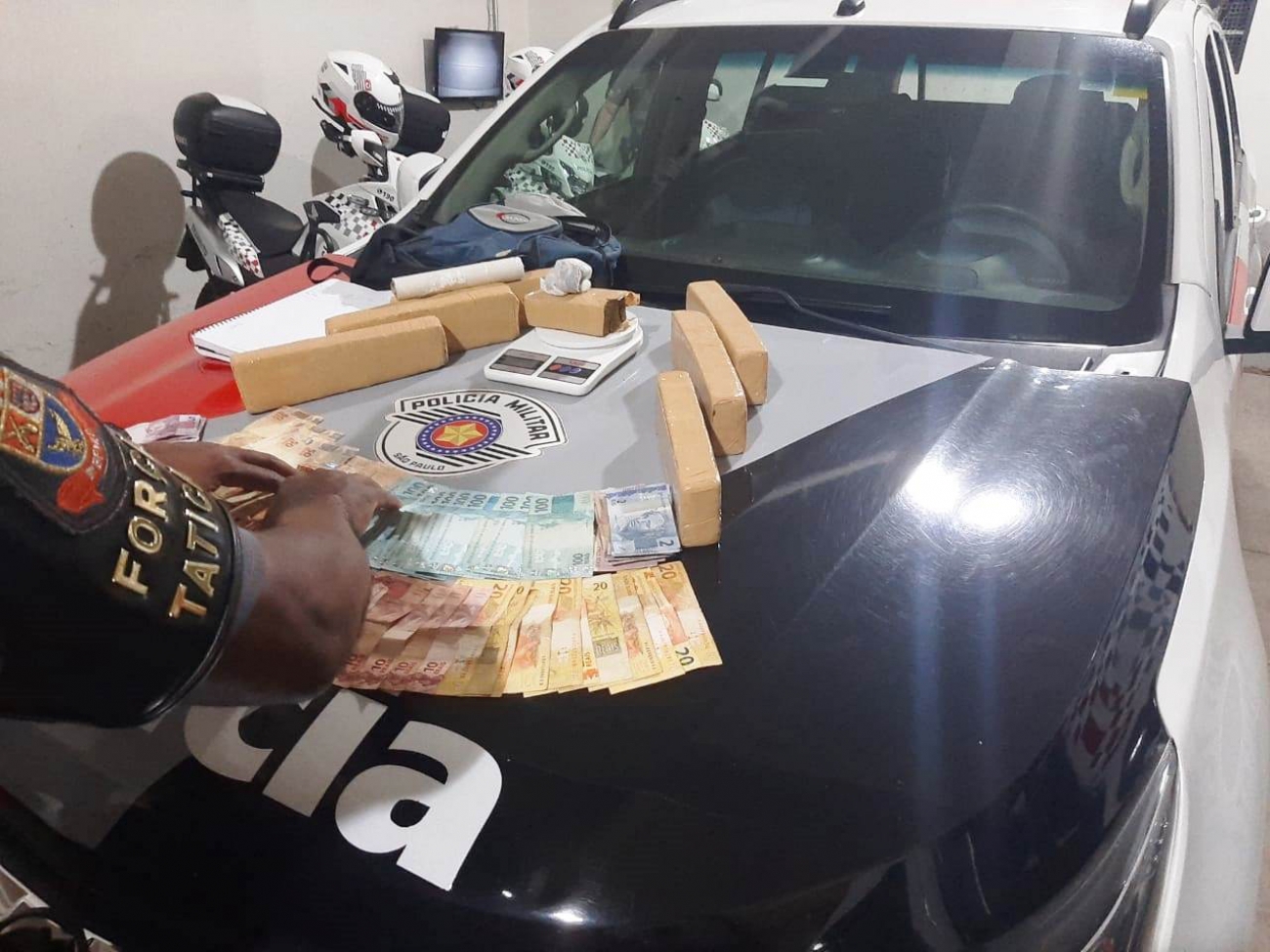 O desempregado Hugo de Souza Wanderley, de 25 anos, foi preso por policiais militares da Força Tática acusado do crime de tráfico de entorpecentes na noite de quinta-feira (25) no bairro Nova Marília III, na zona Sul. Ele foi flagrado com 3,8 quilos de maconha e mais de R$ 2,3 mil em dinheiro.