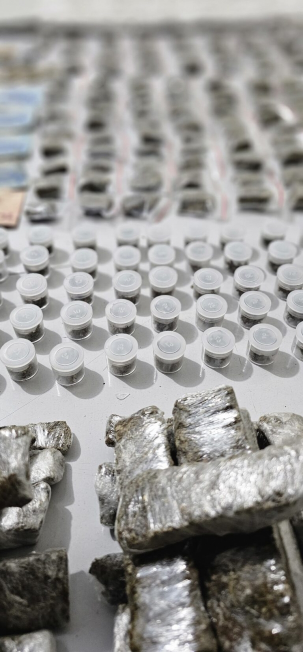 No total, mais de 1,7 quilo de drogas embaladas, organizadas e prontas para alimentar o vício e a desgraça de muita gente!
