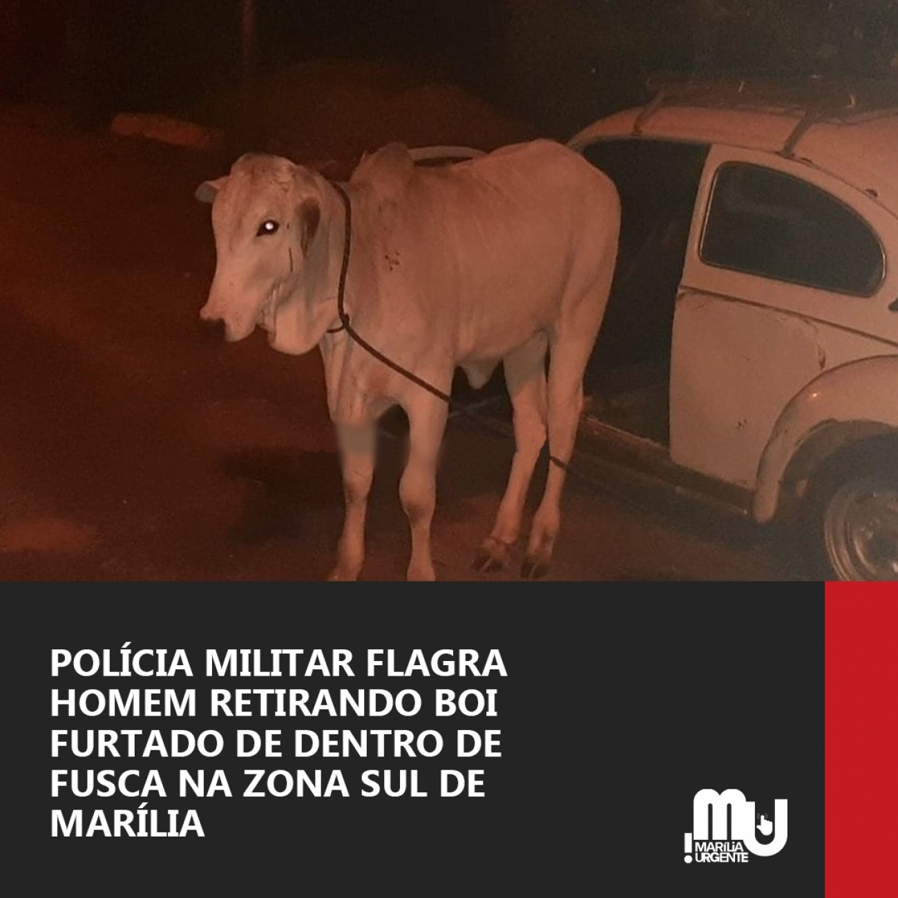 Um homem de 37 anos foi flagrado pela Polícia Militar no início da madrugada desta sexta-feira (18), quando retirava um boi de dentro de um fusca. O animal era produto de furto. O flagrante foi logo após a meia noite, na Vila Real, Zona Sul de Marília.