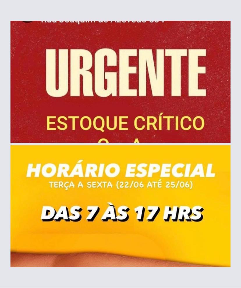 🌟Banco de Sangue de Ourinhos - horário especial de funcionamento das 7 às 17 horas