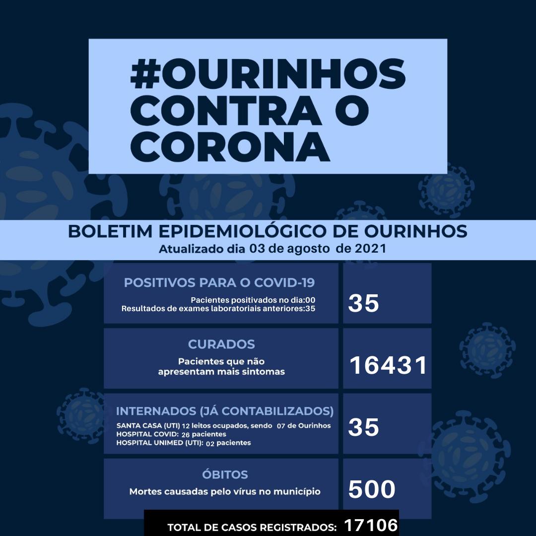 O governador João Doria anunciou que o estado de São Paulo identificou 346 municípios sem registros de mortes por COVID-19 na última semana, indicando que mais de 53% das cidades paulistas não tiveram vítimas da doença desde 28 de julho. O balanço reflete o impacto positivo da campanha de vacinação para redução dos casos graves e mortes pela doença. Ourinhos, entretanto, fica no grupo de 299 municípios que ainda registraram mortes na última semana, já que a Prefeitura informou a morte de uma mulher de 79 anos, moradora na Vila Boa Esperança, com hipertensão e diabetes, no boletim da sexta-feira passada, dia 30 (clique e relembre). Faz cinco dias que a cidade não confirma um novo óbito por Covid. Confira o último boletim divulgado, nesta terça-feira (3):